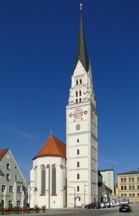 Pfaffenhofen a. d. Ilm ist eine Kreisstadt zwischen Ingolstadt und München. Markanter Blickfang im Stadtbild ist der kanpp 78 m hohe spitze Kirchturm der Stadtpfarrkirche. Von 1393 bis 1408 wurde die dreischiffige Basilika im gotischen Stil erbaut und um 1670 barockisiert. Nach einem Turmbrand wurde dieser im Jahr 1768 wieder aufgebaut.